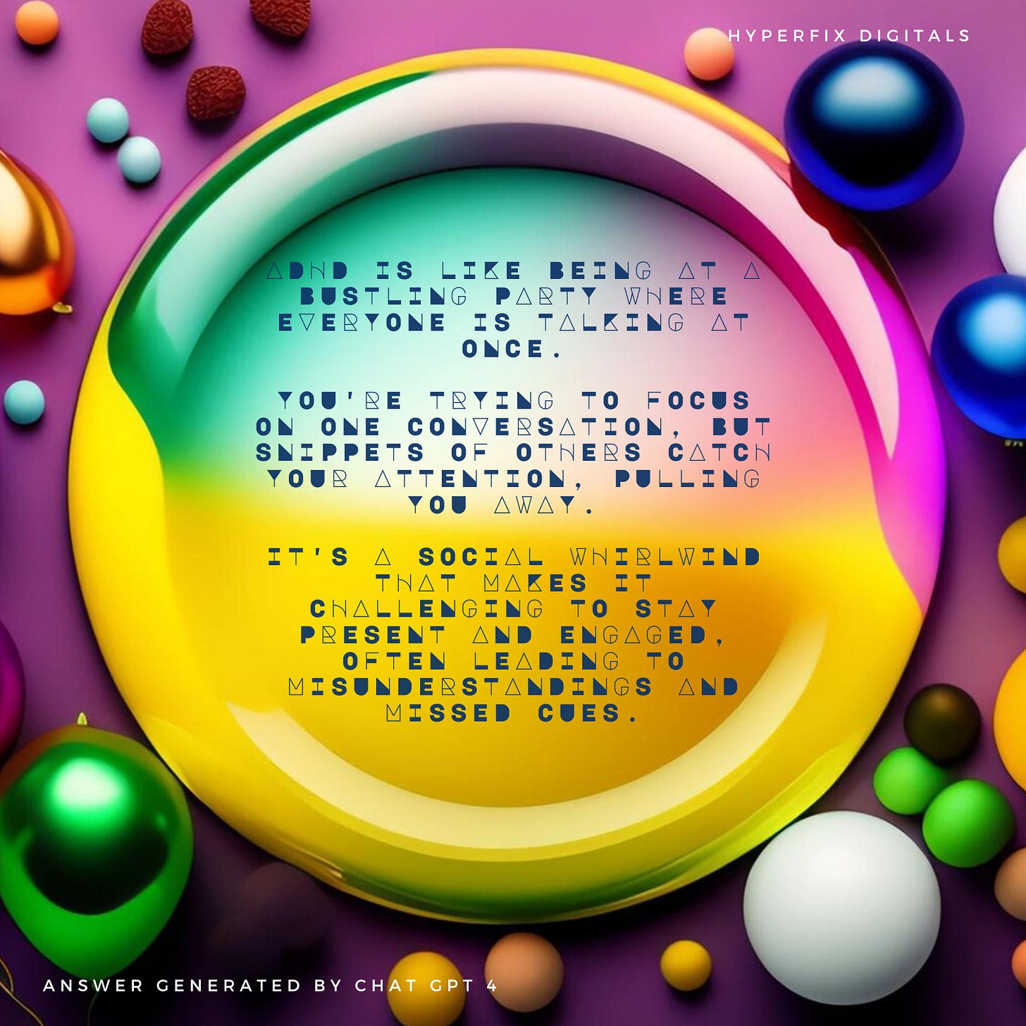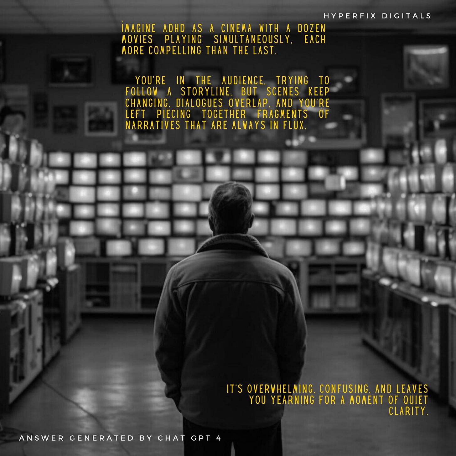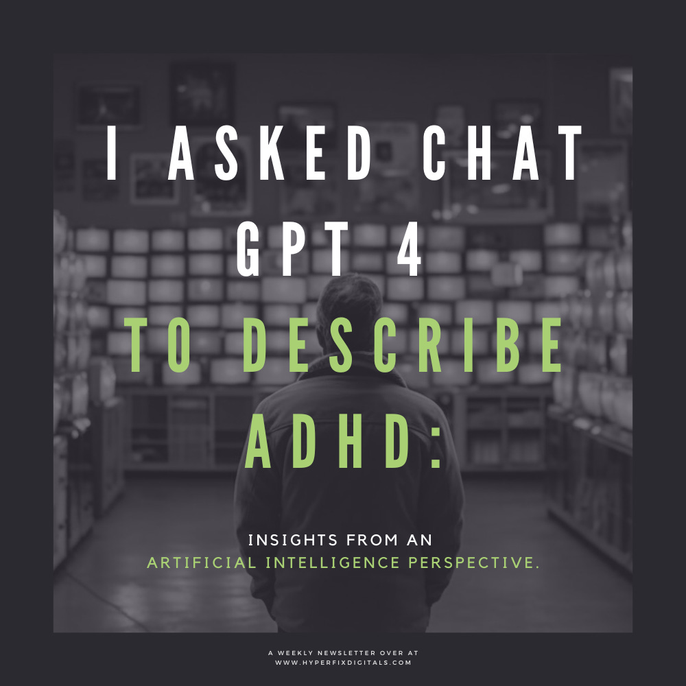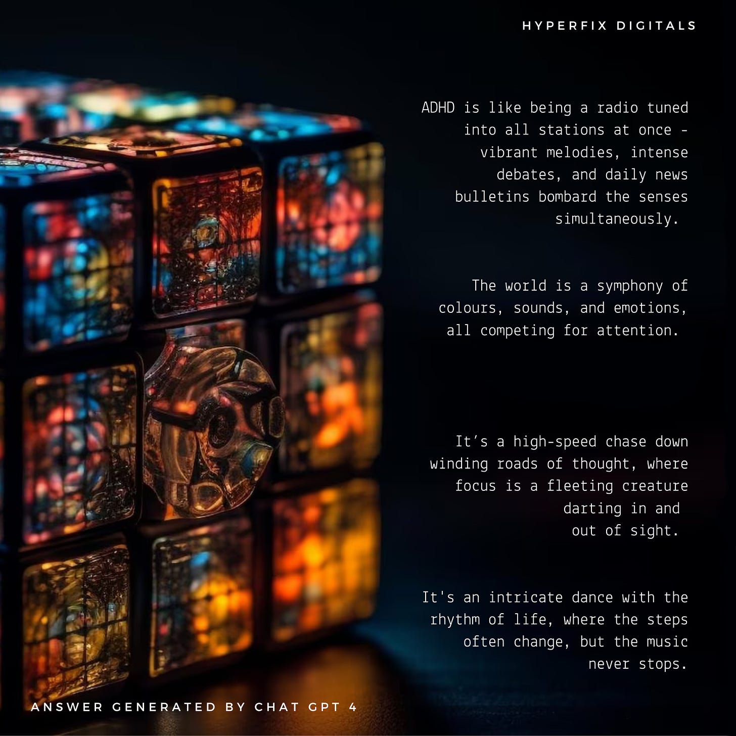 You see, I recently posed a question to a Chat GPT 4, asking it to describe what living with ADHD is like. I wanted to explore this because, as many of you can attest, ADHD can be incredibly challenging to explain to those who don't experience it.