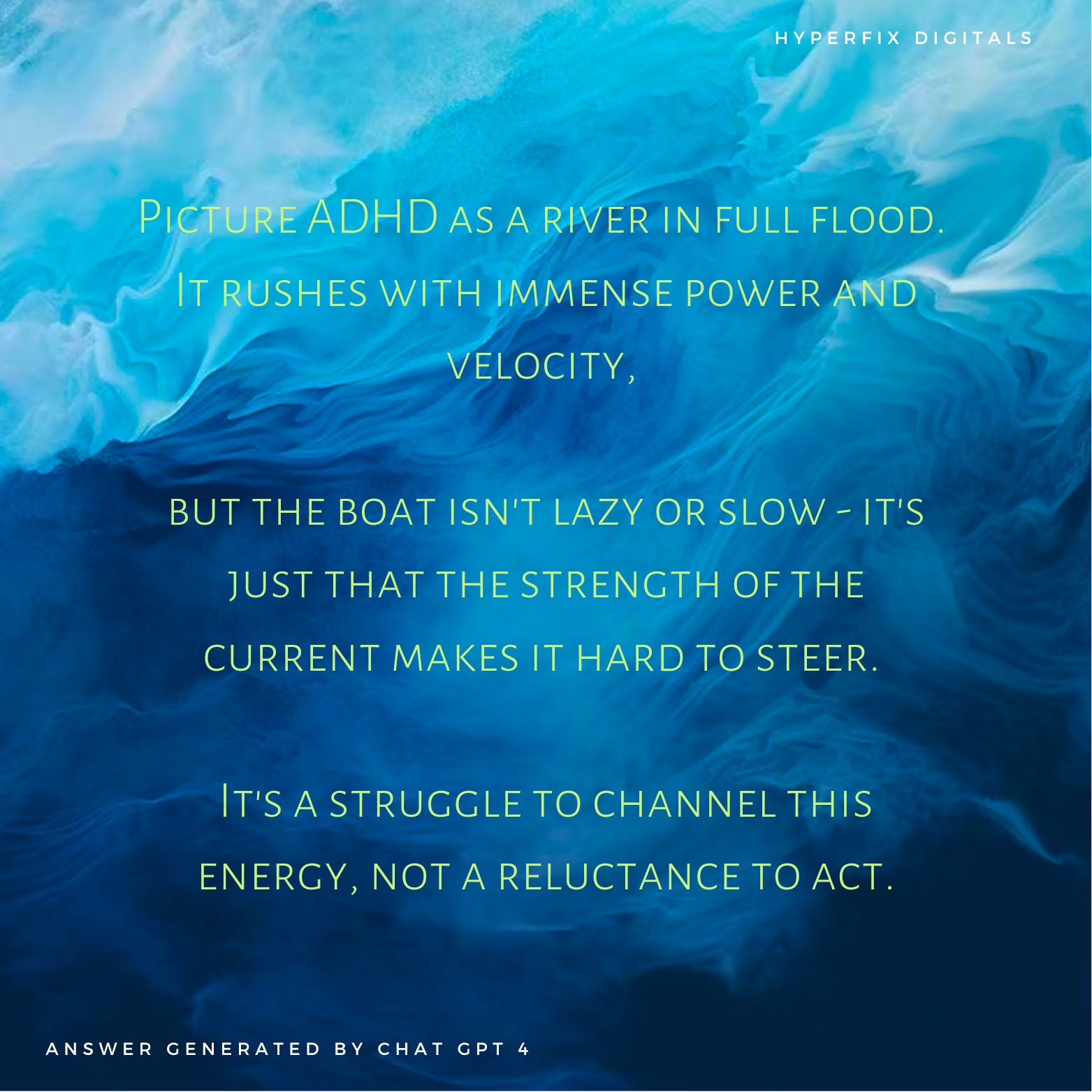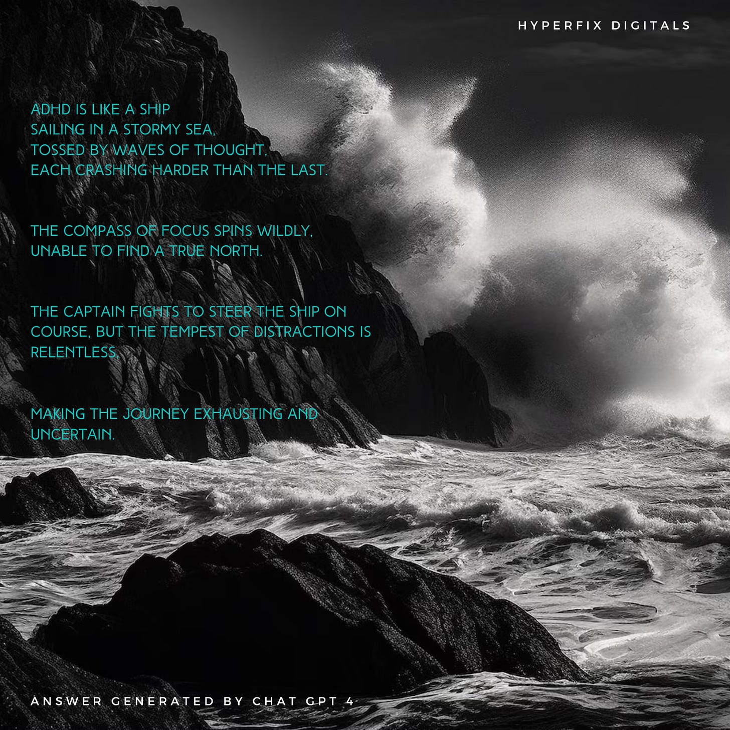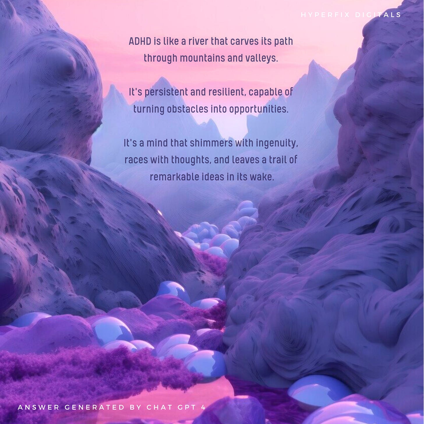 You see, I recently posed a question to a Chat GPT 4, asking it to describe what living with ADHD is like. I wanted to explore this because, as many of you can attest, ADHD can be incredibly challenging to explain to those who don't experience it.